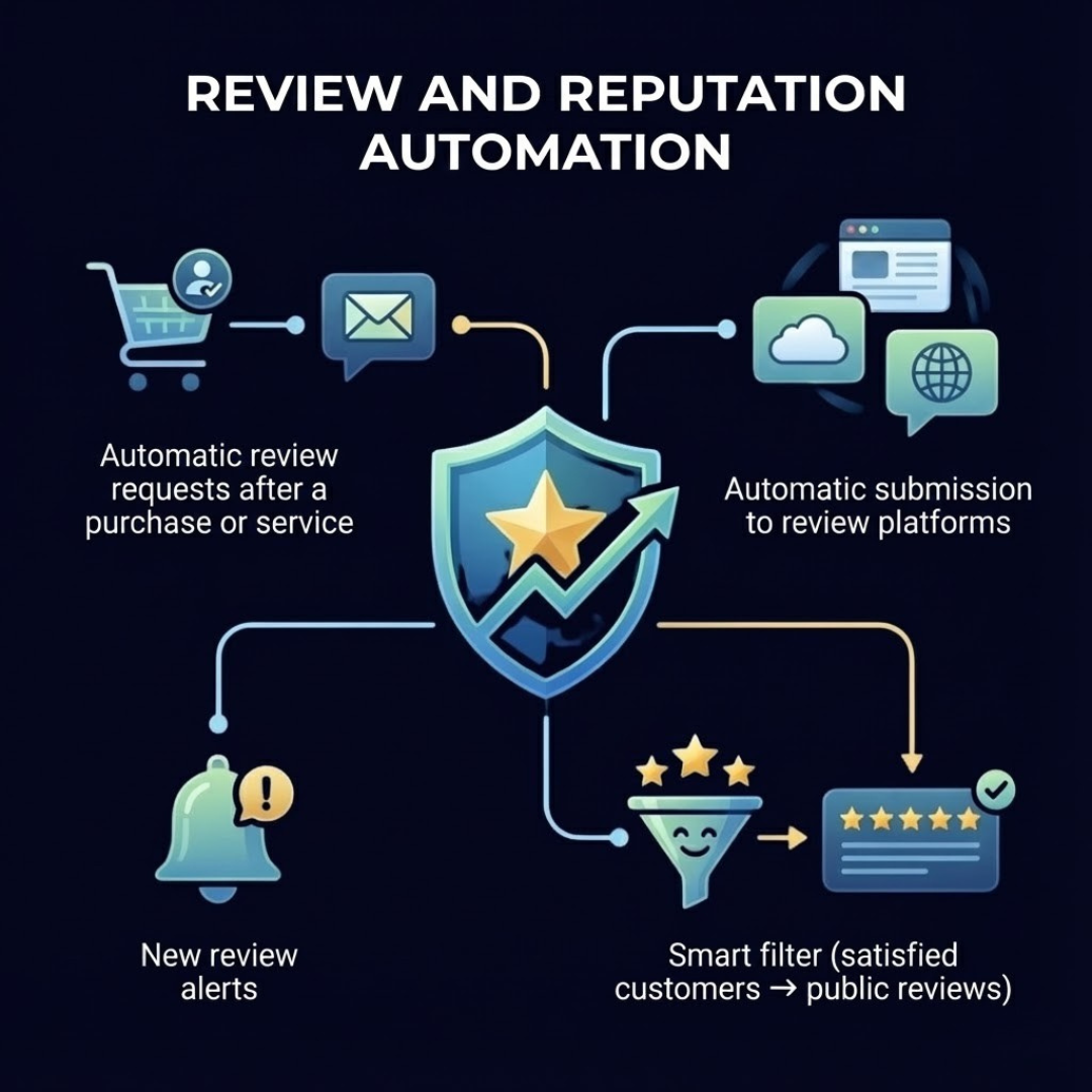 We automatically request reviews after each purchase or service and send them to platforms such as Google or Trustpilot.